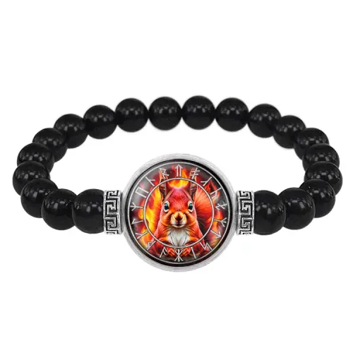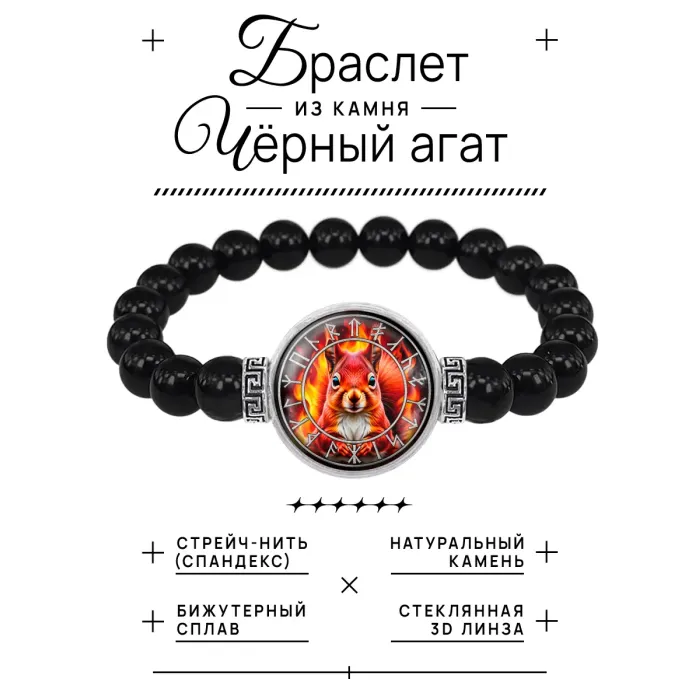 Браслет из черного агата Славянский Тотемный Годослов - Огненная Векша BSBA-267