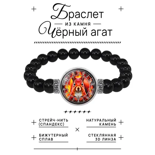 Браслет из чёрного агата Славянский Тотемный Годослов - Огненная Векша является уникальным аксессуаром, который не только украшает, но и несёт в себе глубокий культурный смысл. Этот браслет связан с циклом славянского тотемного годослова, состоящим из 16 лет. По древнеславянскому календарю новый год начинался в день весеннего равноденствия — 21 марта, что придаёт изделию особую символику.