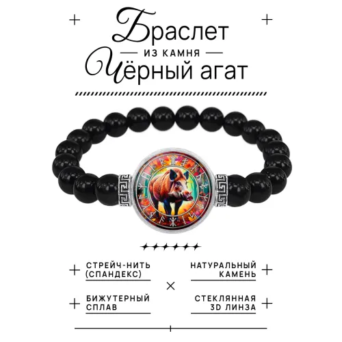 Размеры и комплектация: Диаметр бусин 8 мм, диаметр изображения 20 мм, внутренний диаметр браслета ~5.5 см.