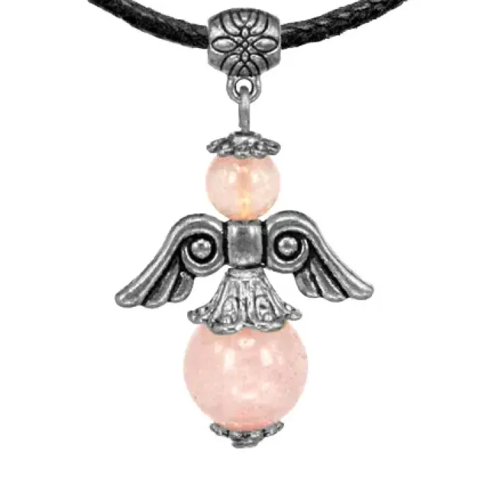 Талисман Ангел-хранитель с натуральным камнем розовый кварц 3,5 см AH006-S