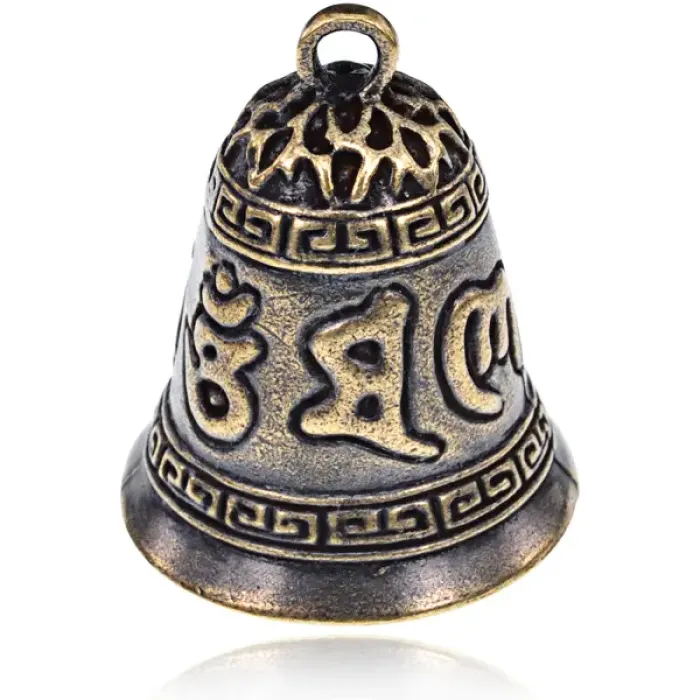 Подвеска для кулона или брелка в виде колокола с мантрами, изготовленная из бронзы.