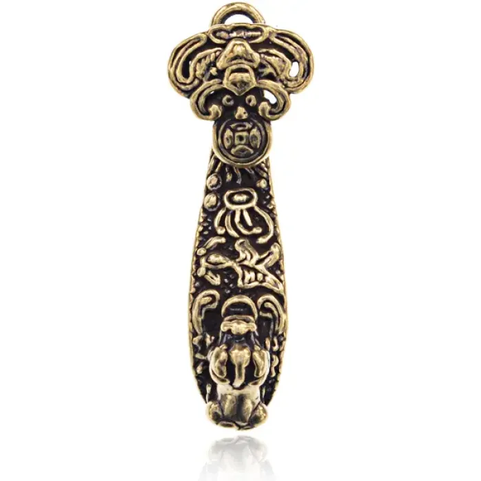 Подвеска для кулона или брелка Жезл Руи и Пи Яо — это уникальный аксессуар с глубоким символическим значением. В восточной культуре жезл Руи олицетворяет удачу и благополучие, а Пи Яо считается защитником от негативной энергии. Эта подвеска выполнена из качественной бронзы и имеет размеры 4,5х1,5 см. Она идеально подходит как для украшения личных вещей, так и в качестве подарка близким. Элегантный дизайн делает её универсальным дополнением к любому стилю. Подвеску можно использовать не только как элемент декора, но и как оберег в повседневной жизни.