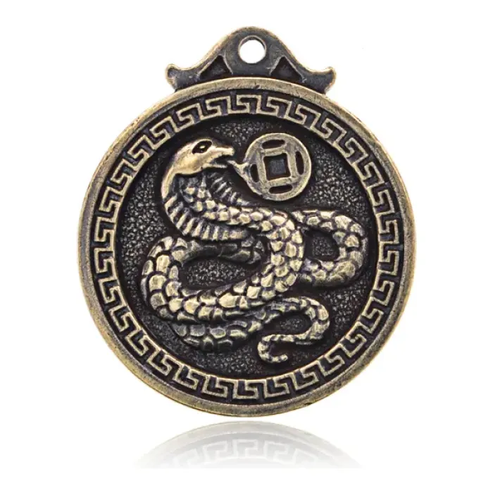 Подвеска для кулона или брелка с изображением Змеи из Восточного гороскопа. Изготовлена из бронзы, диаметр 3 см.
