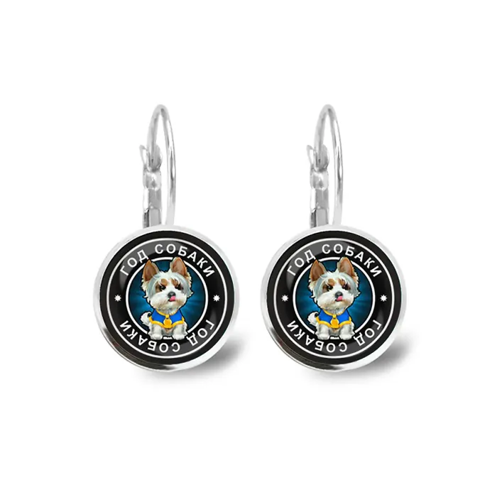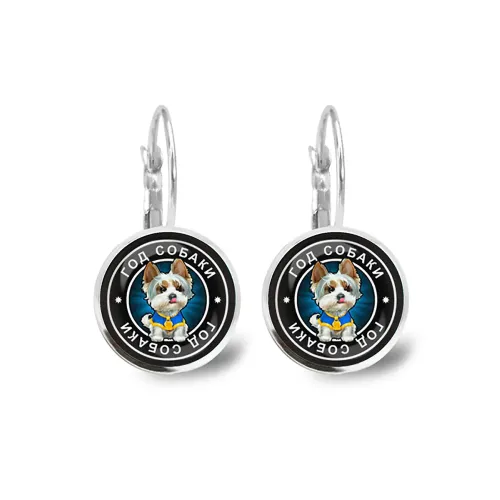 Серьги с изображениями, символизирующими год Собаки, станут прекрасным украшением для любителей восточной культуры. Эти стильные серьги диаметром 18 мм защищены под выпуклыми стеклянными линзами, что придаёт им особую привлекательность.