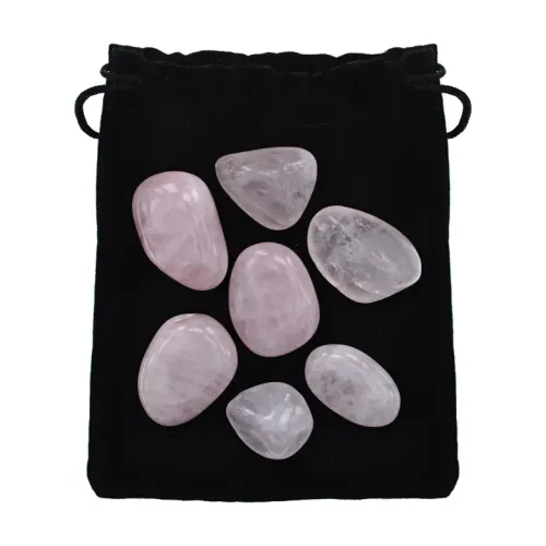 Набор из 7 гладких натуральных камней в мешочке, розовый кварц STK003-02