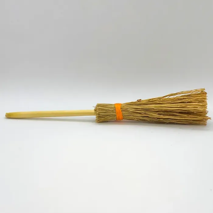 Обережный веник «ВЕЗУНЧИК» — сувенир из сорго и шерстяной нити, переплетённый оранжевой нитью.