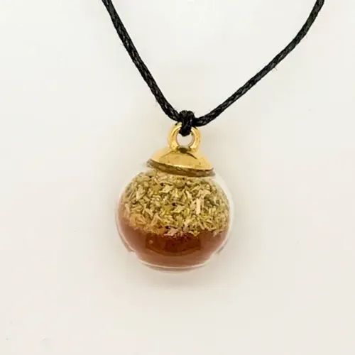 Материал и изготовление: Изготовлен из ромашки, смолы «кровь дракона», стекла и хлопковой нити.