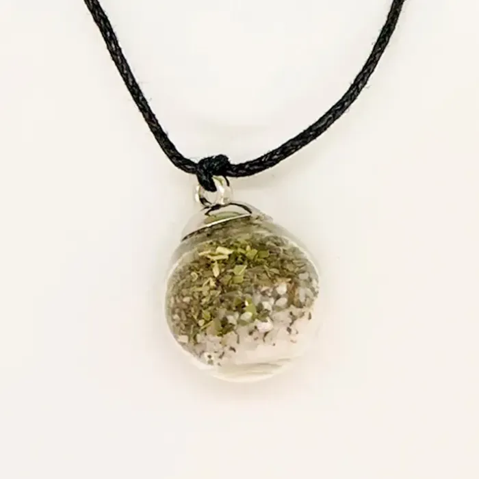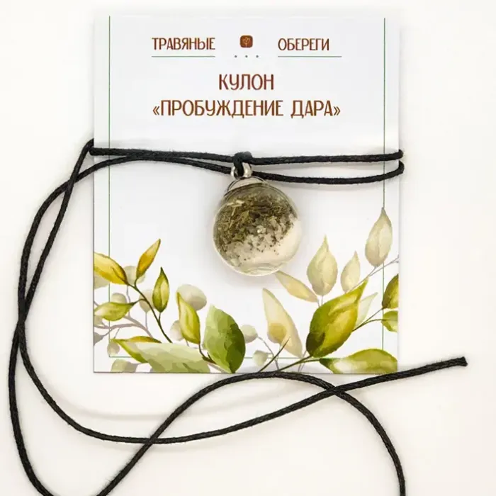 Обережный кулон из мяты и белой соли в стеклянном корпусе.