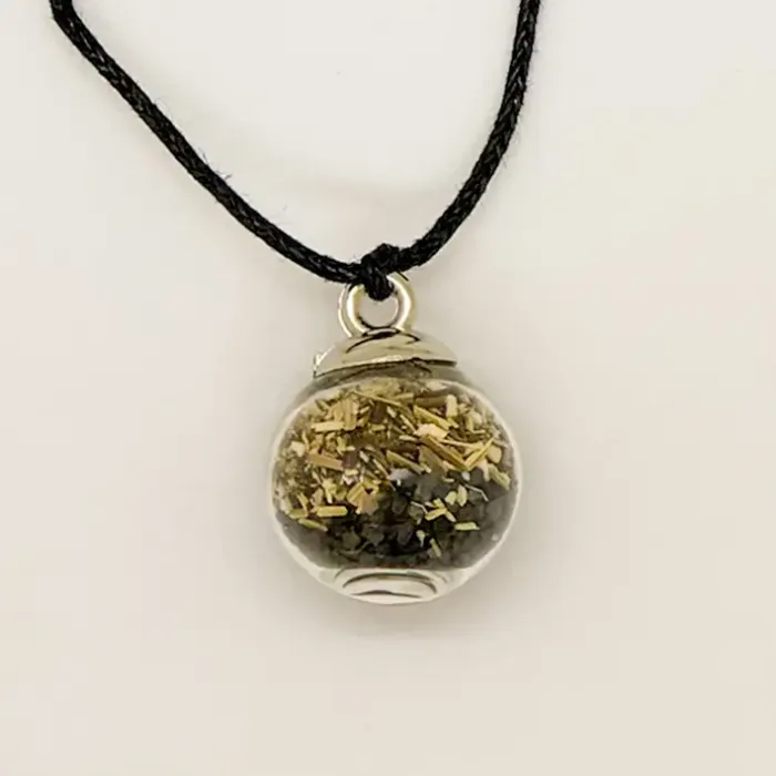 Обереговый кулон из череды и черной соли в стеклянном корпусе.