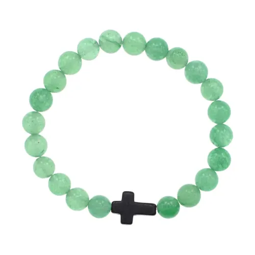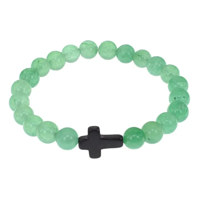 Христианский браслет Крест с нат.камнем Нефрит 8мм BSHE-12-13