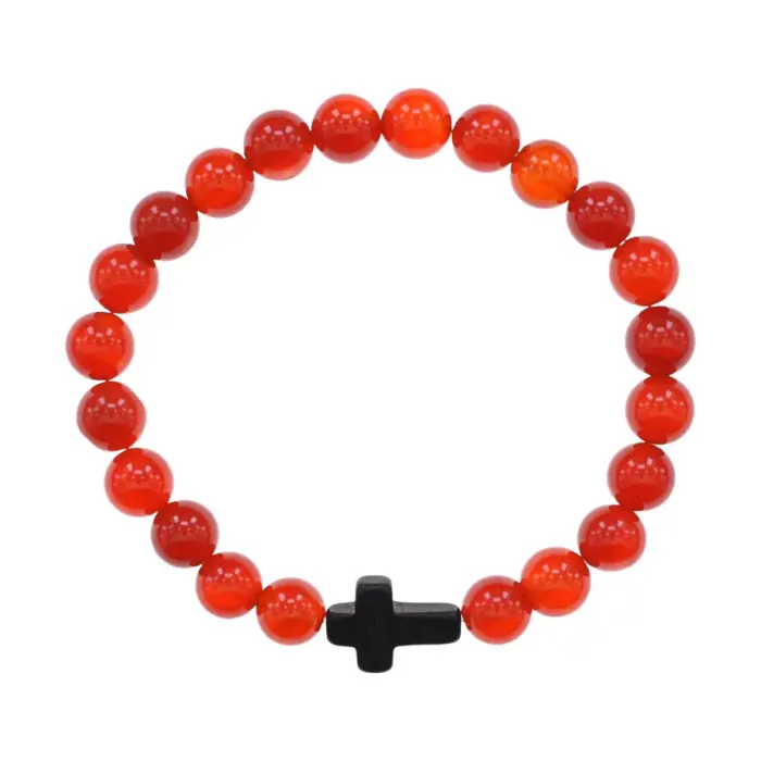 Христианский браслет Крест с нат.камнем Сердолик 8мм BSHE-12-17