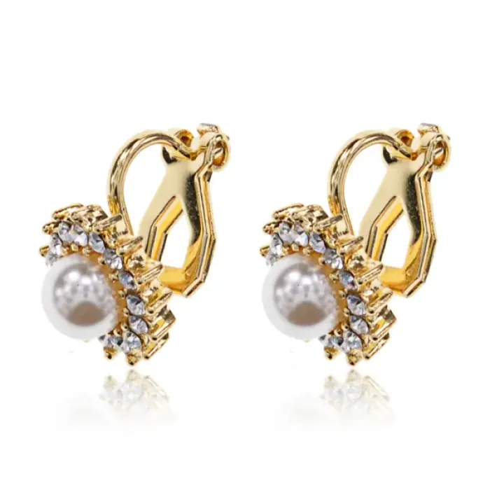 Серьги из бижутерного сплава с дизайном в виде солнца, декорированные искусственным жемчугом и стразами.