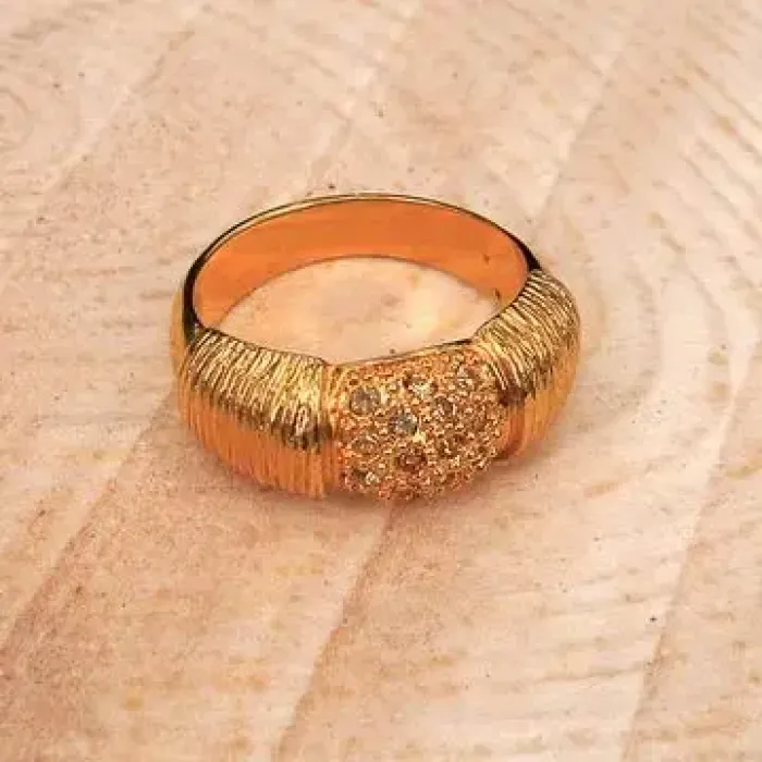 Кольцо из бижутерного сплава со стразами и покрытием под золото.