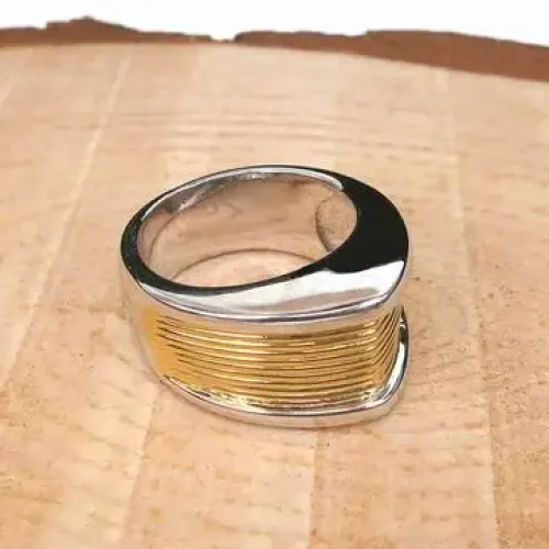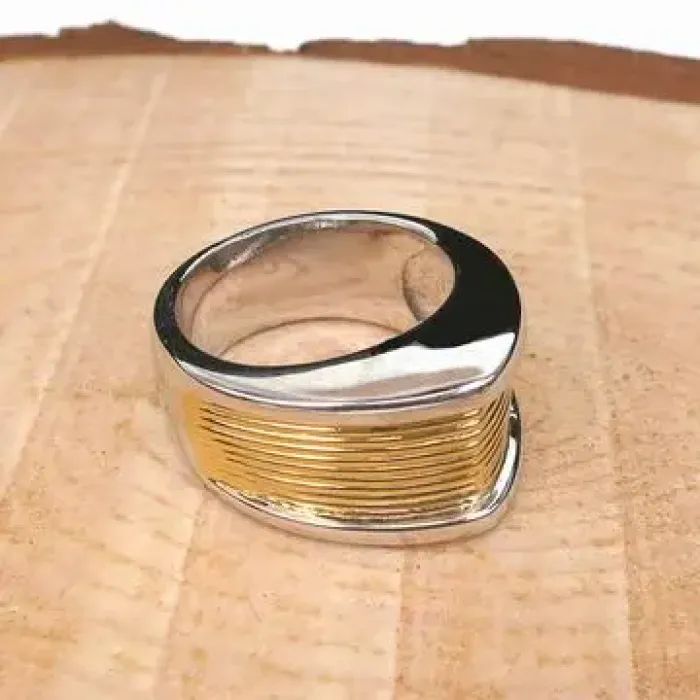 Бижутерное кольцо золотого цвета.