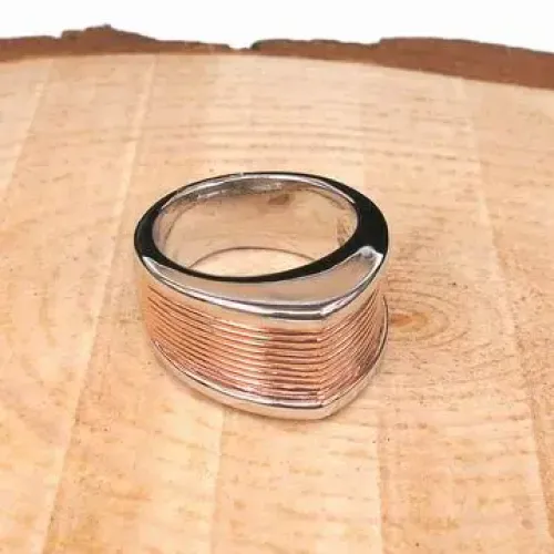 Бижутерное кольцо для носки, выполнено в медном цвете с отделкой под серебро.
