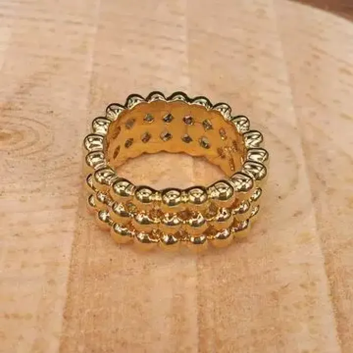 Бижутерное кольцо тройной формы с покрытием под золото.
