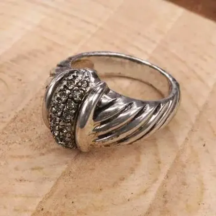 Бижутерное кольцо для носки, выполненное из сплава с покрытием под серебро и вставками из страз.