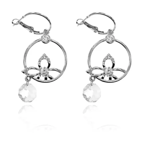 Серьги Трехлистник с прозрачным кристаллом UD082-W