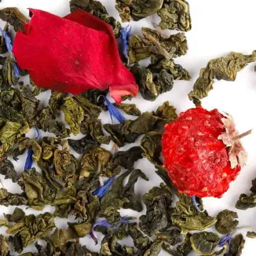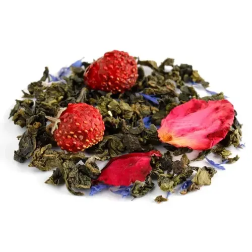 Ароматизированный улун с изысканным, ярким букетом. В его основе — китайский полуферментированный чай, гармонично дополненный ягодами клубники, цветочными лепестками и фруктовыми нотами.