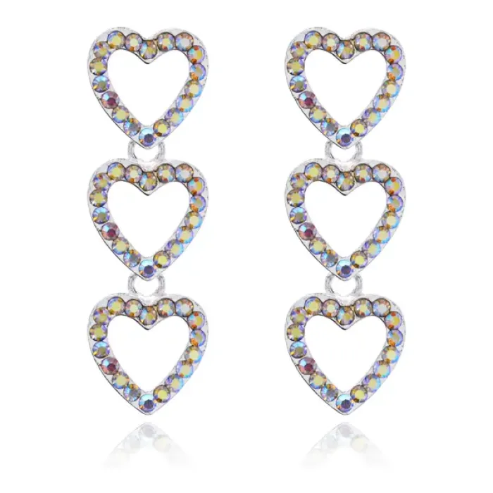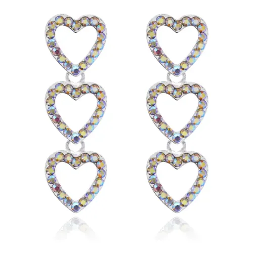 Серьги из бижутерного сплава в виде трёх сердец, украшенные стразами.