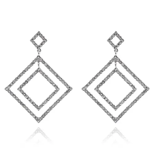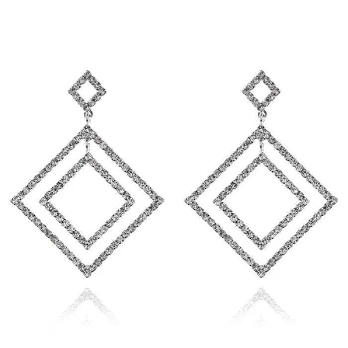 Серьги из бижутерного сплава в виде трёх ромбов со вставками из страз.