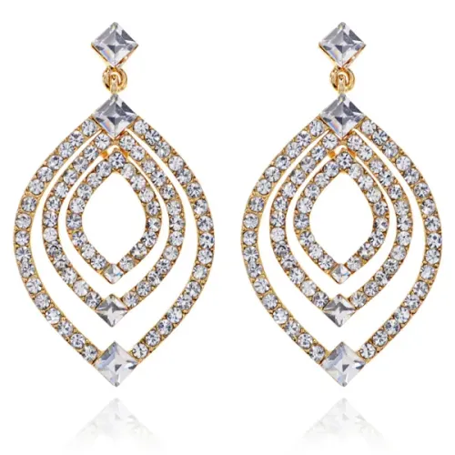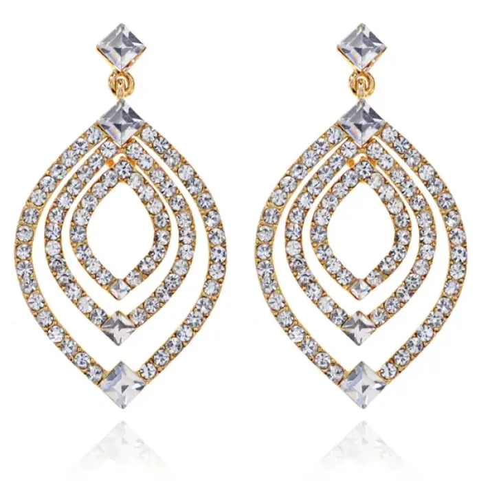 Серьги Лист со стразами, цвет золотой UD090-g