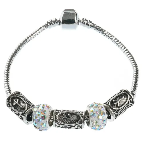 Рунический браслет для сувенирных целей, изготовлен из бижутерного сплава с покрытием под серебро и украшен рунической формулой.