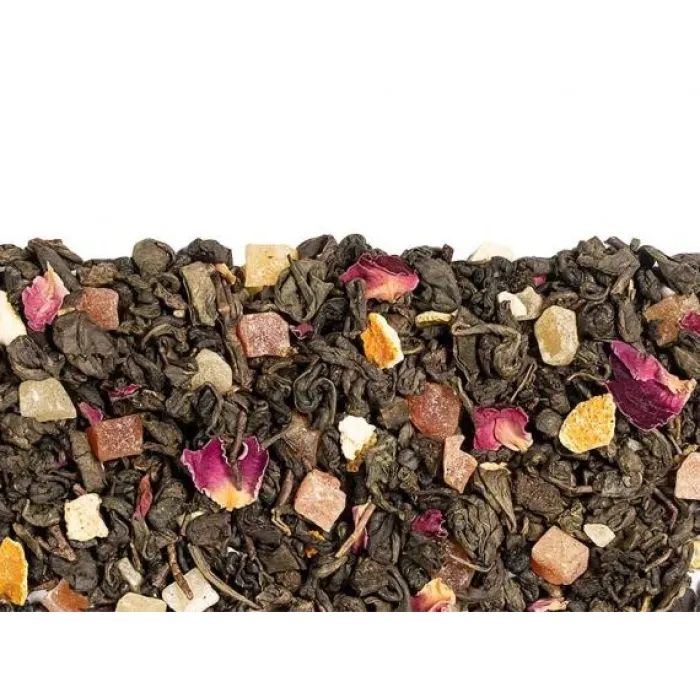 Крупнолистовой китайский зелёный чай ганпаудер (порох) с добавками тропических фруктов и цветов. Напиток обладает гармоничным вкусом, в котором сочетаются сладость тропических фруктов, цитрусовая свежесть и лёгкий цветочный оттенок.
