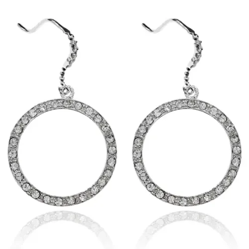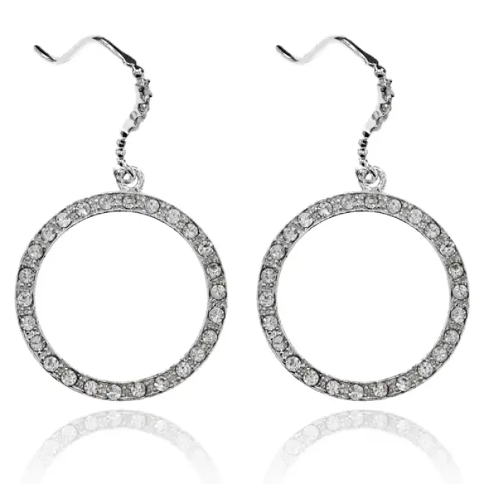 Серьги-кольцо из бижутерного сплава с австрийскими стразами и покрытием под серебро.