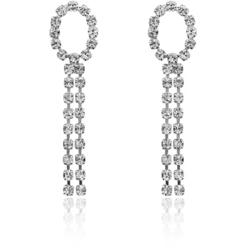 Серьги овальной формы со вставками из страз. Изделие из бижутерного сплава с покрытием под серебро.