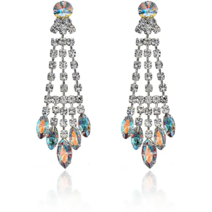 Серьги Люстра со стразами, цвет голубой UD112