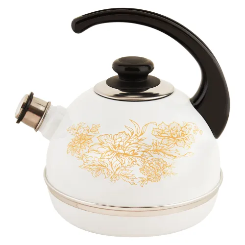 Корпус чайника выполнен из эмалированной стали, что обеспечивает устойчивость к коррозии. Крышка, ободок и свисток изготовлены из нержавеющей стали. Эргономичная ручка обеспечивает удобный и безопасный захват.