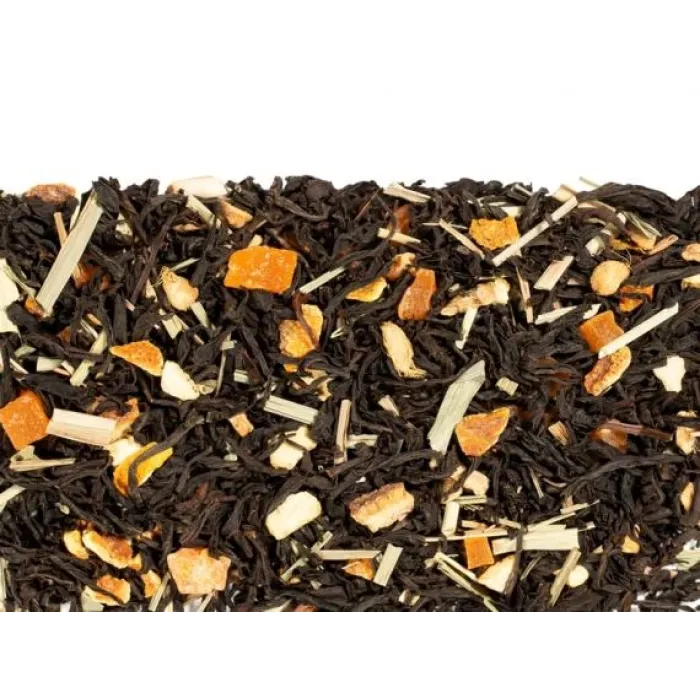 Крупнолистовой ароматизированный черный чай с пряным характером, в котором согревающая острота имбиря гармонично сочетается со свежими цитрусовыми нотами цедры апельсина и лимонной травы (лемонграсса), дополненными сладковатым оттенком ананаса.