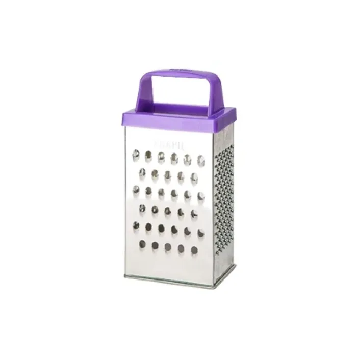 Универсальная квадратная терка предназначена для измельчения различных продуктов, таких как сыр и овощи. Изделие выполнено из прочной белой жести, что обеспечивает долговечность и надежность в использовании.