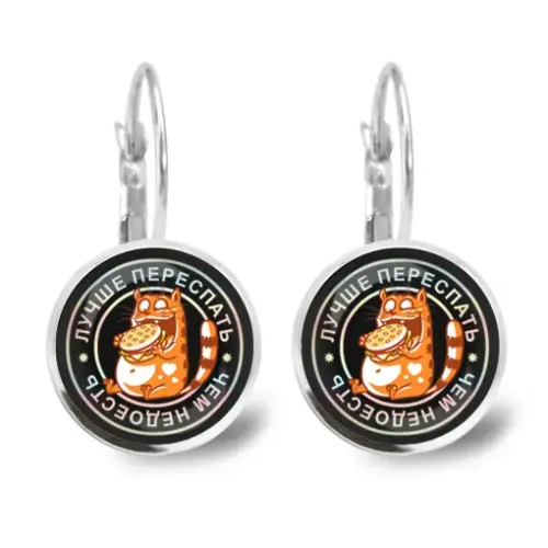 Серьги для носки с изображениями под выпуклыми стеклянными линзами диаметром 18 мм.