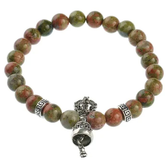 Браслет Ваджра с колоколом, унакит, 8мм BSDT1-06