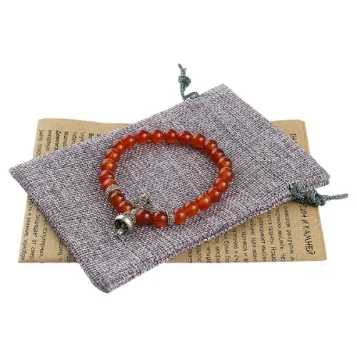Стрейч-браслет из натурального сердолика с амулетом в виде ваджры и колоколом.