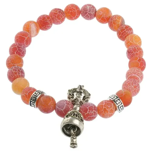 Стрейч-браслет из натурального африканского агата с подвеской в виде ваджры и колокольчика.