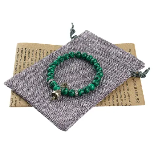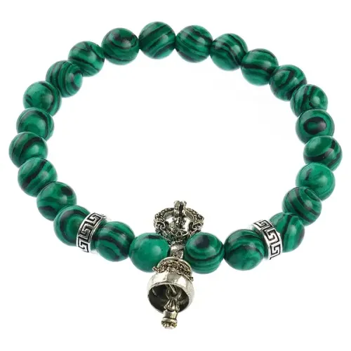 Стрейч-браслет из синтетического малахита с амулетом Ваджра и колоколом.