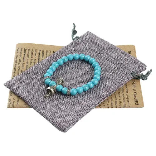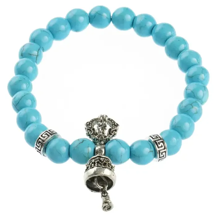 Стрейч-браслет с амулетом Ваджра и колоколом из синтетического камня бирюза.