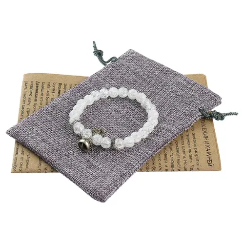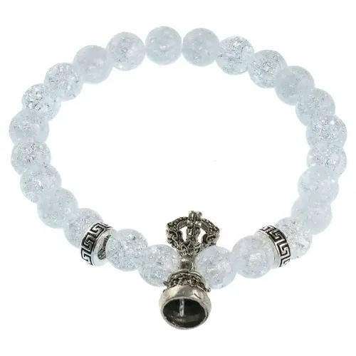 Стрейч-браслет из синтетического камня сахарный кварц с амулетом Ваджра и колоколом.