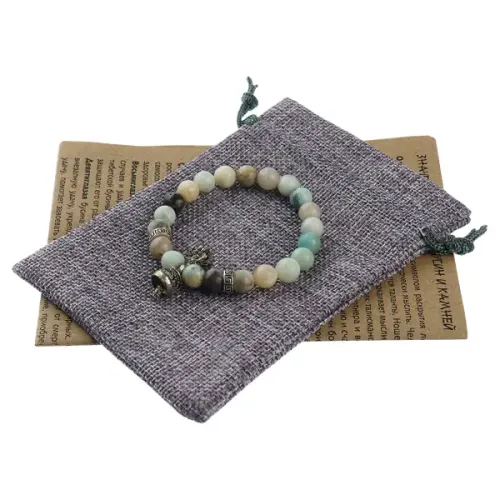 Стрейч-браслет из натурального камня амазонит с бусиной Дзи и бусинами с символом Ом.
