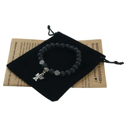 Православный стрейч-браслет из натурального камня Лава — символ силы и мудрости. Этот браслет не только украшение, но и оберег, который традиционно используется для защиты от негативной энергии и плохих людей. Бусины диаметром 8 мм изготовлены из прочного базальта, а размеры ангела-хранителя составляют 23х14 мм. Металлические бусины добавляют элегантности с размерами 7х7 мм.