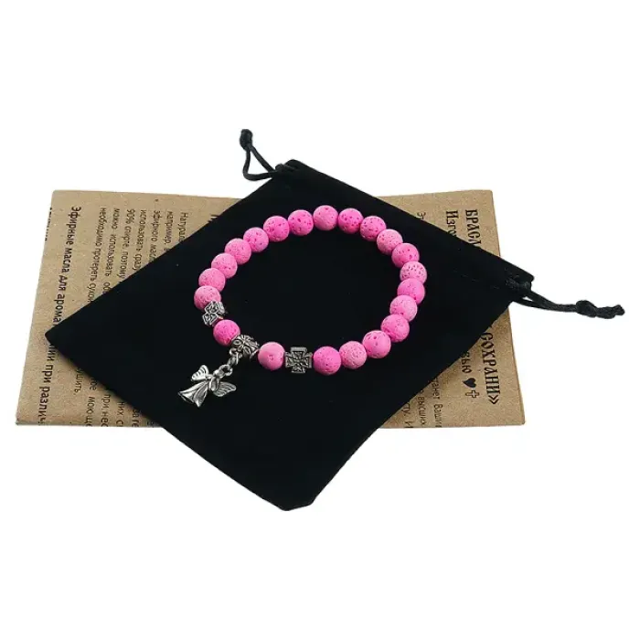 Браслет Спаси и сохрани с Ангелом-хранителем, лава, 8мм, цвет розовый BSV4-07