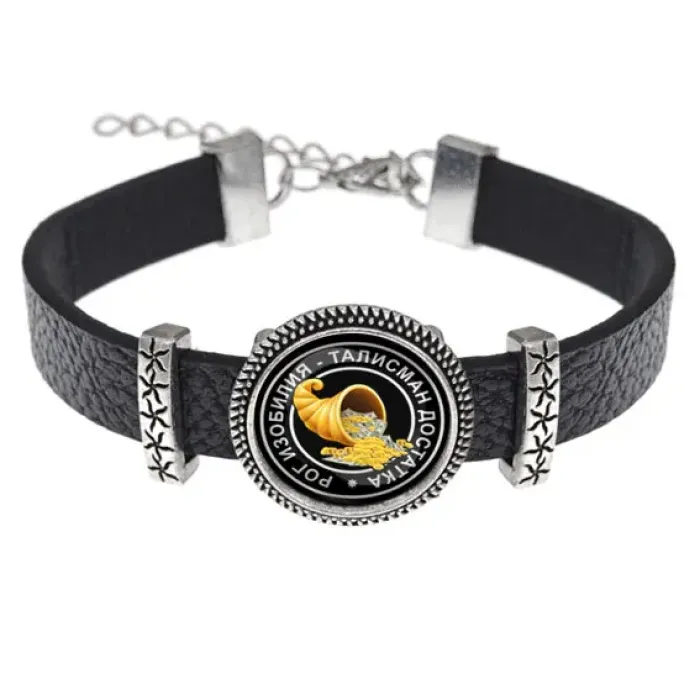 Кожаный браслет с декоративным элементом «Рог изобилия».