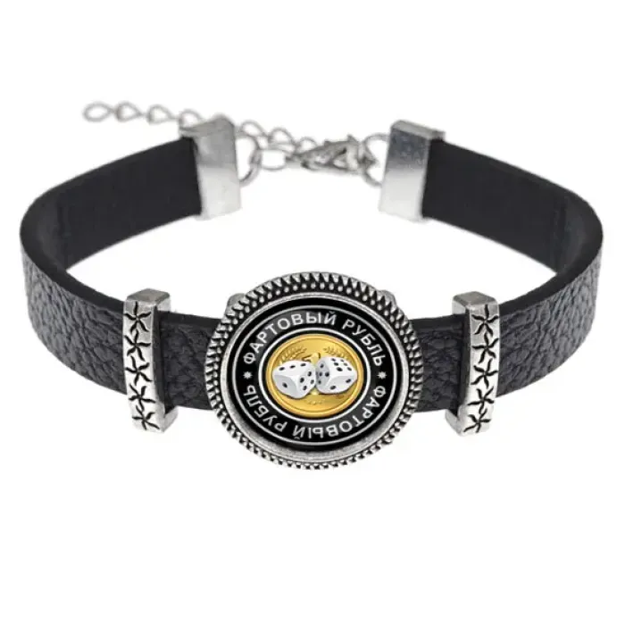 Кожаный браслет Фартовый рубль BSK2-0088