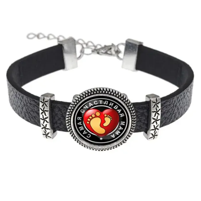 Кожаный браслет 'Самая счастливая мама' — это стильный и трогательный аксессуар, который символизирует любовь и заботу о маме. Изготовленный из высококачественной кожи, он отличается прочностью и элегантным дизайном. Основная деталь — изображение диаметром 18 мм под выпуклой стеклянной линзой, что придаёт изделию особую выразительность. Браслет имеет регулируемый размер, что позволяет легко подстроить его под любую руку. Упаковка выполнена в виде прозрачного пакета, что делает его отличным вариантом для подарка или сувенира. Традиционно такие украшения дарят в знак признательности и любви к самым близким людям.