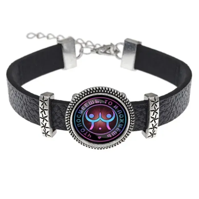 Кожаный браслет с изображением под выпуклой стеклянной линзой.