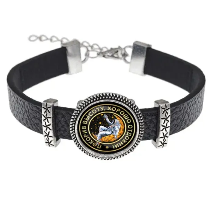 Кожаный браслет 'Покорителю высот' — это стильный аксессуар, который символизирует стремление к новым вершинам и достижениям. Изготовленный из качественной кожи, он дополнен металлическими элементами и стеклянной линзой диаметром 18 мм, подчеркивающей уникальный дизайн. Регулируемый размер позволяет носить его на любой руке, что делает этот браслет универсальным выбором для мужчин и женщин. Упаковка в прозрачный пакет добавляет удобства при хранении или дарении. Этот браслет станет отличным подарком для тех, кто ценит оригинальные аксессуары с глубоким смыслом.