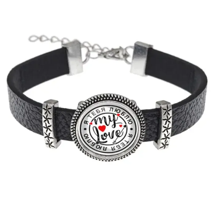 Кожаный браслет с трогательным изображением, заключенным под выпуклой стеклянной линзой. Этот аксессуар символизирует любовь и привязанность, идеально подходит для подарка близким. Основные характеристики: регулируемый размер позволяет носить его на любой руке, а качественные материалы — кожа, металл и стекло — обеспечивают долговечность и стильный внешний вид. Упакован в прозрачный пакет, что делает его отличным вариантом для презентации.
